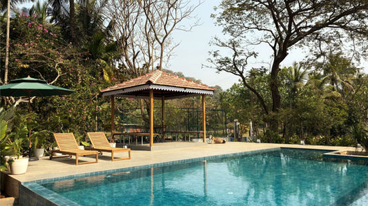 Where the coast slows you down and paradise takes over. An infinity pool melting into green lawns, a quiet gazebo for lazy hours, your own pickleball court, and an orchid farm that feels straight out of a dream. This 3 Bhk tropical villa is made for families and friends - foosball-filled living spaces, private balconies, and beach days just 10 minutes away. A perfect blend of coastal calm and lush villa living.