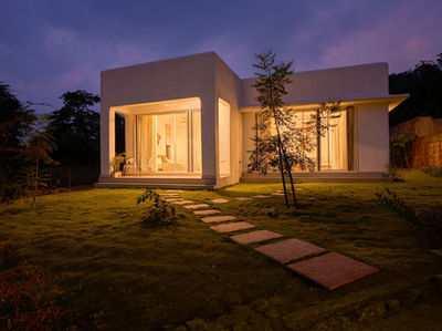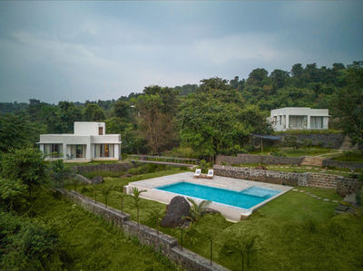 Perched high above the valley, this Greek-inspired villa is a serene sanctuary of light, space, and uninterrupted views, where clean white architecture meets the raw beauty of nature. With no neighbouring bungalows in sight, it feels like your own private hilltop - offering absolute peace, privacy, and an endless continuity of lush landscapes stretching into the horizon. The infinity pool and expansive deck become the soul of the home, inviting you to start your day with glowing sunrises and end it with breathtaking sunsets. Every moment here is unhurried, immersive, and deeply calming - designed to let you slow down, breathe deeply, and simply exist in blissful tranquility.